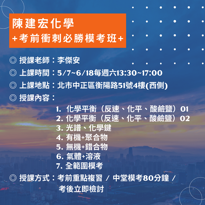 ◎授課方式:考前重點複習 / 中堂模考80分鐘 / 考後立即檢討